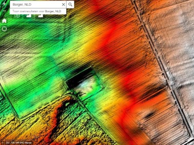 In het gebied ten zuiden van Buinen liggen meerdere -mogelijke- pingoruïnes. Veel van deze locaties betreffen zogenaamde ‘droge pingoruïnes’, waarin zich nooit -veel- veen heeft ontwikkeld (zie hoogtekaart fragment).