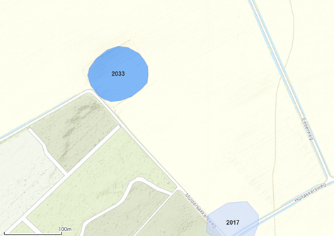 In het kader van de Geoweek 2017 is hier met een groep leerlingen van het OSG Piter Jelles !mpuls uit Kollum, veldonderzoek gedaan. In deze periode betreft het nog een vrijwel ronde depressie die verdeeld is over meerdere graslandpercelen en deels wordt begraasd door een paar paarden. Op de luchtfoto van 2020 zie je aan de donkere kleur de contouren van de laagte. Inmiddels is de laagte onderdeel geworden van de akker.