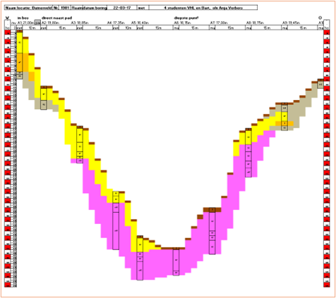 Er werd geboord langs één lijn, ook wel raai genoemd, om zo meer inzicht te krijgen in de samenstelling van de ondergrond. Het goed beschrijven van de afzonderlijke lagen die je ‘aanboort’ is erg belangrijk. Dit is nodig om een tot een profiel te kunnen komen, en dat geeft weer inzicht in het type depressie; bijvoorbeeld of het een pingoruïne betreft, of dat het uitblazingskom is.