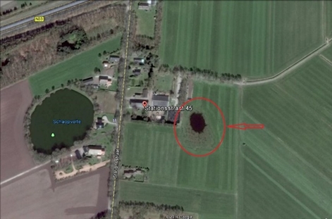 Deze pingoruïne ligt in een grasland, direct achter de boerderij. Een van de schuren is op de westrand van de pingoruïne gebouwd (zie hoogtekaart). Het grasland van de pingoruïne laat nu een lichte depressie zien met het midden een kleine waterplas. De locatie is onderzocht samen met 15 leerlingen van een tweede klas van het Nassau College uit Gieten in het kader van de Geoweek 2016, onder leiding van Anja Verbers (LBD) en Erik Meijles (RUG). In de directe omgeving liggen veel mogelijke pingoruïnes, zoals de Schoaopvolte, die in het verleden als schapenwas heeft gediend.