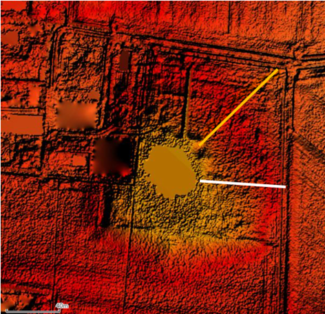 Aan de hand van de hoogtekaart is er langs twee lijnen (raaien) geboord (A: oranje, B: wit) en zijn er om de 10m boringen gedaan. De locatie blijkt sterk verstoord. Alleen aan de randen van de pingoruïne is nog een origineel bodemprofiel te vinden: een podzolbodem in dekzand, dat op keileem ligt.