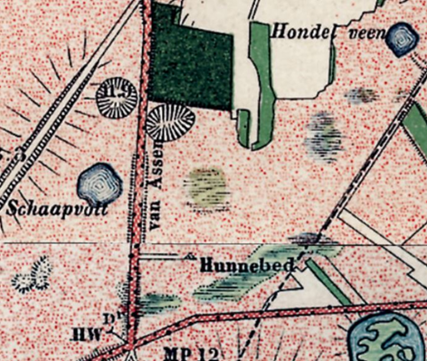 Op de kaart uit 1900 is, tegenover de Schaapvolt, een schapenwasplaats, een natte laagte te zien in de heide. Dit betreft deze locatie. In 1950 is de laagte niet meer zichtbaar, maar onderdeel geworden van een weiland. In 1970 is de laagte deels open gegraven. Zie hiervoor de fragmenten van de topografische kaarten hieronder. Ten noorden van deze locatie ligt nog een diepe ‘kuil’, deze wordt de gletsjerkoel genoemd (zie ook locatie 1627), dit is ook een pingoruïne.
