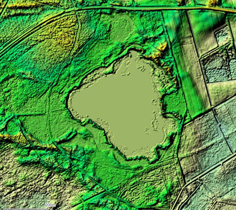 Op de hoogtekaart is goed zichtbaar het gaat om een min of meer ronde depressie, die vanaf de randen wat onregelmatig is. Hij is grotendeels gevuld met water en met een mogelijke ‘randwal’ er omheen, maar ook de wal is relatief erg smal en onregelmatig. De maat van het meer is echter relatief groot voor een pingoruïne en de randwal is in verhouding juist weer erg smal. Het kronkelige verloop doet meer denken aan vrij recente verstoring. Maar de vergelijking met het Mekelermeer was voldoende aanleiding om hier toch onderzoek te doen. Het idee was ook om de gestoken kern van het Elpermeer te vergelijken met de kern die in de zomer van 2016 is gestoken tijdens de Summerschool, in het Witteveen (zie locatie 853, elders op de website). Dit betrof wel een vrijwel gave pingoruïne en het veenpakket is daar zo’n 4 m dik.