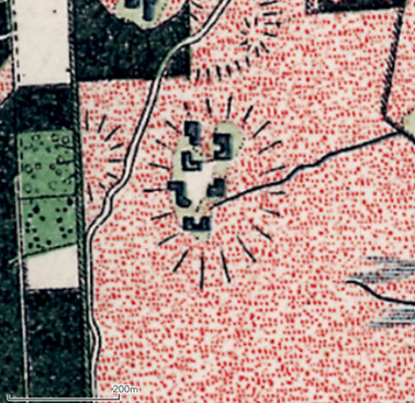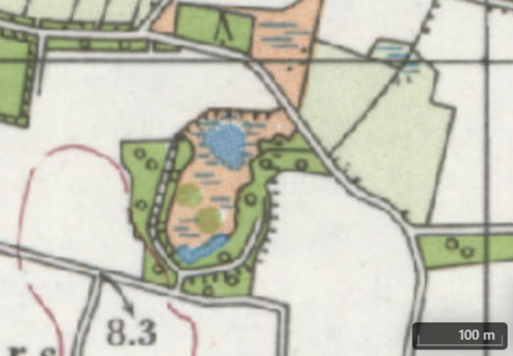 Op de eerste kadastrale kaart uit 1832 wordt aangegeven dat het gebied waarin het Slotveen ligt een heidegebied is, dat eigendom is van de Markgenoten van Tynaarlo. Op de kaart van 1915 zijn de veentjes inmiddels ontdekt en wordt er ook veen gewonnen, er zijn een zestal veenputten zichtbaar. Een waterloopje stroomt vanuit de pingoruïne naar het oost-noordoosten. Pingoruïne zijn vaak kwelpunten, dus zij kunnen zo’n beekje voeden. Het water wordt nu via sloten afgevoerd.