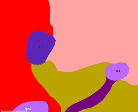 Ook bij deze laagte ligt van zuidwest naar noordoost een greppel, net als in de nabij gelegen pingoruïne Moespot (nr. 811)