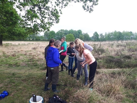 De Geoweek is bedoeld om leerlingen te laten kennismaken met het ‘geo-werkveld’. Het Pingo Programma is bij uitstek een geografisch gerelateerd project, daarom is het leuk om leerlingen er bij te betrekken. Na uitleg over het doel van het veldwerk en de manier van boren gingen 14 leerlingen samen met hun drie docenten en onder leiding van Anja Verbers, Iris Odding en Bart Koops in drie groepjes aan de slag.