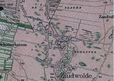 Op de hoogtekaarten is ook een stukje van het oude beekdal te zien, de waterloop is nu vrij strak, maar het oorspronkelijke dal en delen van de oude beekloop zijn herkenbaar