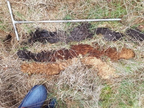 Uit het booronderzoek blijkt dat het hier om een uitblazingskom gaat. Vaak worden dergelijke, met water gevulde kommen in het zandlandschap, vennen genoemd. Bij een uitblazingskom vind je vaak mooie podzolprofielen, met een duidelijke uitspoelingslaag of E-horizont (grijs) en een dikke inspoelingslaag of B-horizont. Onze boringen laten dit goed zien (zie foto boring, de boring begint links boven).